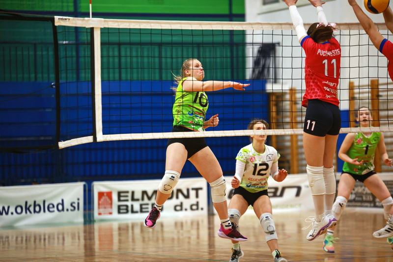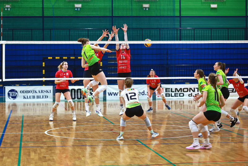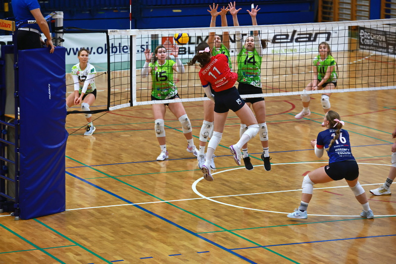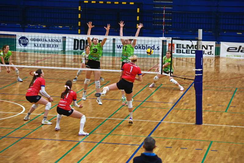 Domače so tekmo bolje začele v napadu in bloku in povedle s 13:7. Gostje so se vrnile s požrtvovalno igro v polju in iznajdljivimi napadi (16:14), a Radovljičanke so na odlični servis Kaje Gimpelj ponovno ušle. Gostje so oddaljile od mreže, po nekaj lažjem delu v obrambi pa smo v zaključku seta videli še nekaj atraktivnih napadov (Mohorič, Puckmaister, Kregar Dolenc). Domače so niz zanesljivo pripeljale h koncu s 25:18.