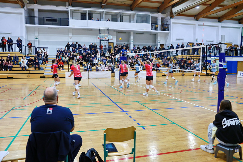 Domače so podjetneje začele tretji niz. Puckmeistrova je bila po uspešnem napadu in asu še enkrat odlična na servisu, Iršičeva pa je podarjeno žogo učinkovito zaključila. Blažičeva je v drugem poskusu v coni 4 povišala prednost na 6:3. Gostje so bolje nadaljevale in izenačile na 7. točki. Sledila je najlepša točka tekme, ko sta obe ekipi kar tekmovali v izjemnih akcijah ob mreži in požrtvovalnih obrambah. Po številnih izmenjavah žoge so bile uspešnejše gostje, za katere je Boisa z napadom prislužila osmo točko. Domači trener je poskušal z Biščevićevo, ki je sicer uspešno zaključila prvi napad, v nadaljevanju pa se je na sprejem vrnila Blažičeva. Gostij to ni zaustavilo in po podobnem scenariju kot v drugem nizu, so tudi v tem povečevale prednost. Po treh zaporednih asih Boise je ta znašala že 7 točk (17:10). Domače so se odzvale s tremi uspešnimi napadi Puckmeistrove in asom Pogačarjeve in še uspele znižati zaostanek na 14:18, a poteka niza več niso uspele preobrniti. Kamničanke so bile še naprej prepričljive v napadu in s prvim tempom zaključile svojo drugo žogo za tretji set in zmago s 25:18.