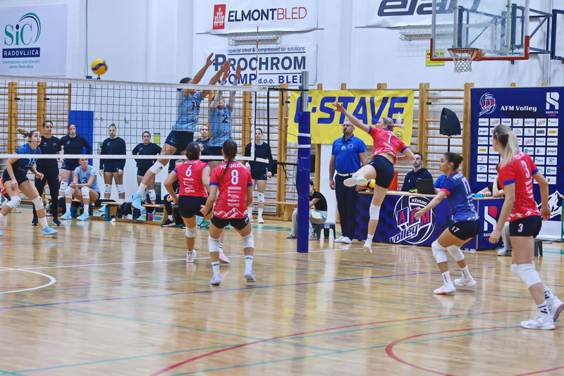 Zmagoviti niz Radovljičank ni ostal neopažen in na drugo domačno tekmo je prišlo domače odbojkarice vzpodbujat največ gledalcev doslej. Skoraj 400 jih je ob bučnem navijanju videlo nervozen začetek tekme, v kateri sta se ob precejšnjem številu napak na obeh straneh ekipi menjavali v vodstvu do 11:11. Čižmanova je po točki v napadu in asu izsilila prvi odmor domačih, potem pa sta Rituperjeva v napadu in Đukićeva na servisu povišali prednost Kamničank na 15:12. Nato sta stvari v svoje roke prevzeli Puckmeistrova in Kregar Dolenčeva in z učinkovitimi napadi najprej pripomogli k izenačenju na 15, nato pa odločilno prispevali do vodstva s 3 točkami. Za 23:19 je bila uspešna Blažičeva in po napaki Topičeve so pri 24:19 številni domači navijači čakali le še piko na i. Gostje pa so bile drugačnega mnenja – trikrat zapored je bila v napadu uspešna Đukićeva, po napaki domačih pa je Neja Čižman z blokom Kamničankam prinesla izenačenje na 24. točki. Domače so si prek Blažičeve in Puckmeistrove priigrale še 2 zaključni žogi, a zaman. Po napaki domačih na servisu je Boisa z dvema zaporednima napadoma niz zaključila v korist gostij.