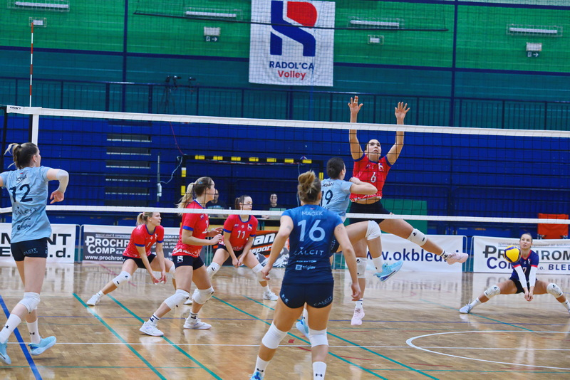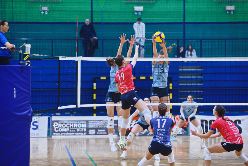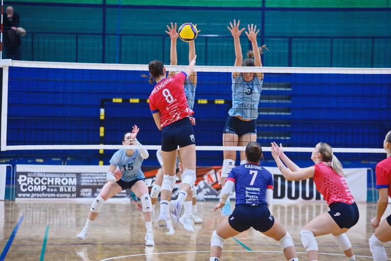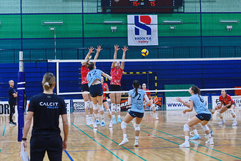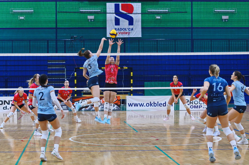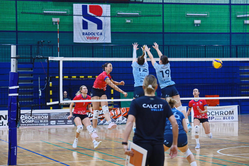 Kot bi se otresle pritiska, so gostje zaigrale še odločneje. Čižmanova, predvsem pa Đukićeva sta bili razpoloženi na servisu in bili najbolj zaslužni, da so Kamničanke lahko odigrale nekaj učinkovitih protinapadov in povedle s 7:3. Sledil je prvi domači premor, nakar so domače izkoristile dva zaporedna zgrešena servisa Calcita in s spretno igro na mreži (Mohoričeva) ter v napadu (Blažičeva) znižale na 8:9. Na žalost domačih gledalcev se je poletna igra gostij nadaljevala. Medtem ko so brez večjih težav prihajale do lepo izdelanih protinapadov, pa so domače le s skrajnimi napori zaključevale svoje napade. Ko so se v igro prikradle še napake v napadu in nekaj nespretnosti in podarjene žoge na mreži, je Calcit že vodil z nedosegljivih 20:13. Z zunanjih položajev so bile Kamničanke uspešne tudi v nadaljevanju, Radovljičanke pa niso našle rešitve za kamniški blok, s katerim je Đukićeva prvo zaključno žogo pretvorila v drugi niz pri 16:25.